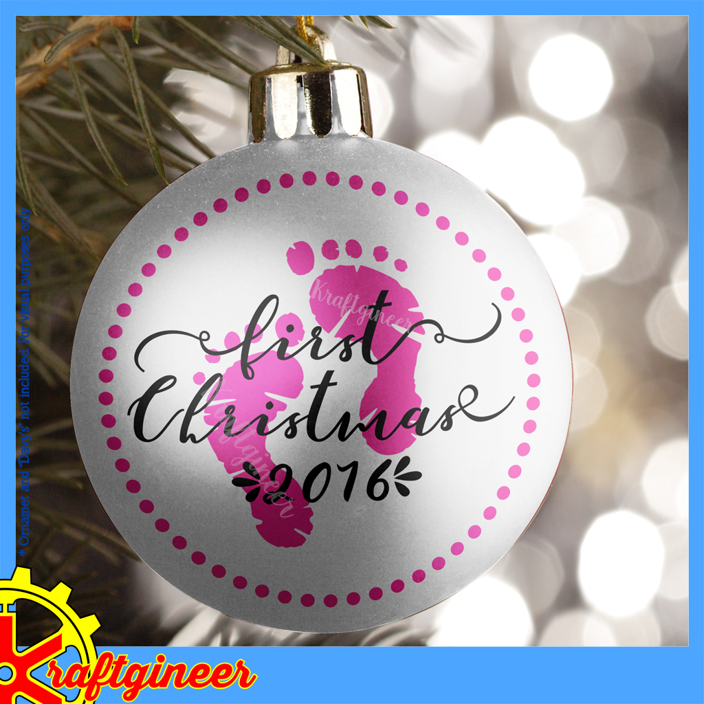 THREE designs included for baby’s first Christmas 2016. The designs are not fully welded to facilitate easy customization, the words can be rearranged. Two design says “First Christmas 2016” and decorated with baby feet and a dot frame. The third design has the phrase “Baby’s First Christmas 2016” in a circle inside of a scalloped frame, perfect for baby’s side silhouette! This design can be used on Christmas ornaments, pillows, shirts, glass blocks, tiles, glass cutting boards, mason jars, floating frames, scrapbooking or any other craft medium. For use on many vinyl projects and even paper projects!