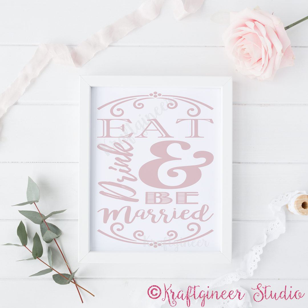 Wedding Design. Two designs included. One design says “EAT Drink & BE Married” in a subway art form. The second design say “Save the Date” with a dove attached to the word “the.” Two sets of brackets included for decoration. One set of horizontal and one set of vertical brackets. Just hide the brackets you do not want to use! Or use without brackets! You can cut this designs or print it out in desired color! This design can also be used as a wedding gift, wedding decoration or a wedding favor. This design can be used on pillows, shirts, glass blocks, tiles, glass cutting boards, mason jars, floating frames, scrapbooking or any other craft medium. For use on many vinyl projects and even paper projects!