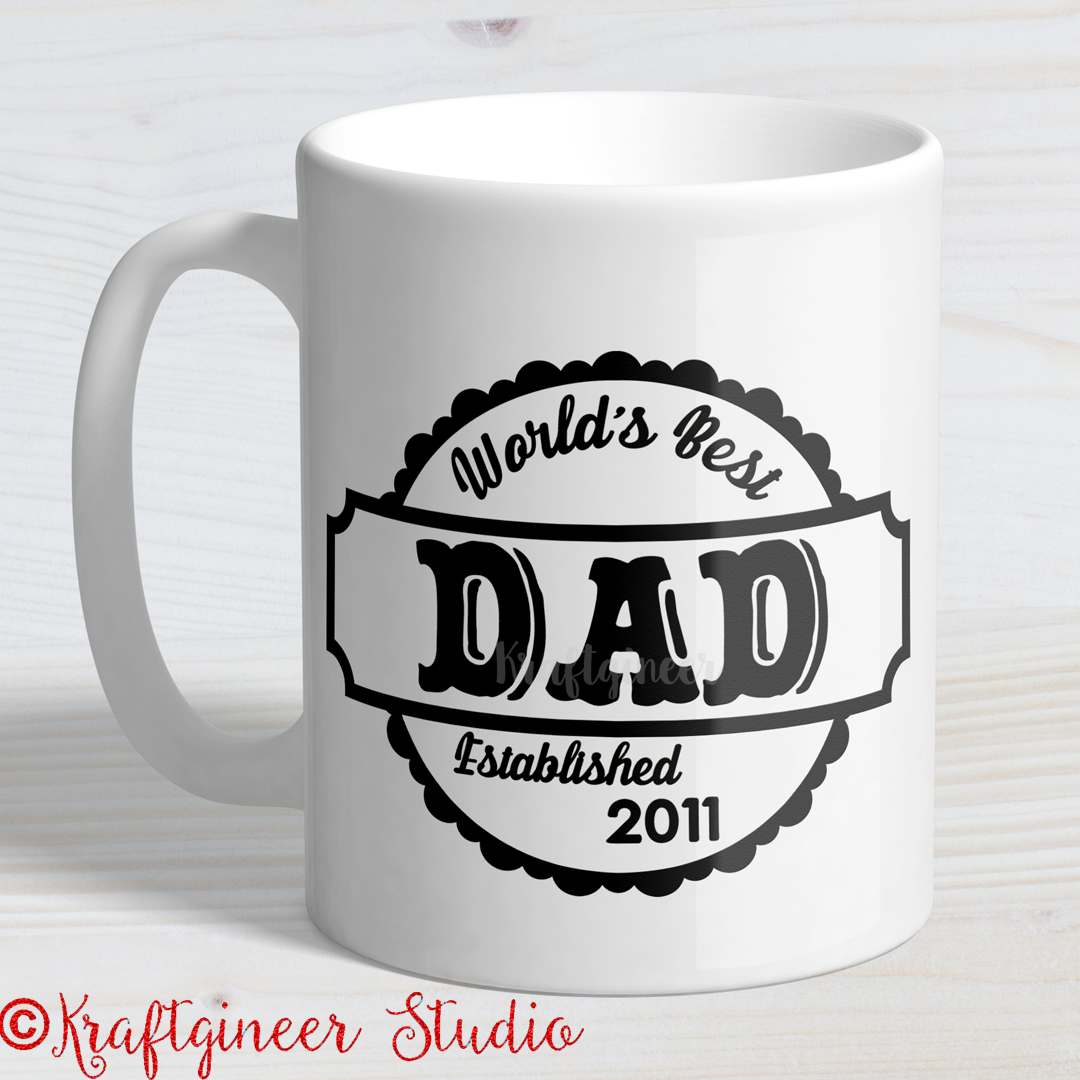 Two designs included, one design has a frame with the word dad in it and “Est.” in cursive right below the frame. The second design has a scalloped circle with a chamferred rectangle frame. Inside the frame is the phrase “World’s Best DAD Established”. Both designs can be customized with a year or with each kid’s birthday. This design can be used on beer mugs, coffee mugs, stainless steel travel mugs, T-shirts, canvas bags, garden flags, glass blocks, tiles, glass cutting boards, mason jars, floating frames, scrapbooking or any other craft medium. For use on many vinyl projects and even paper projects!