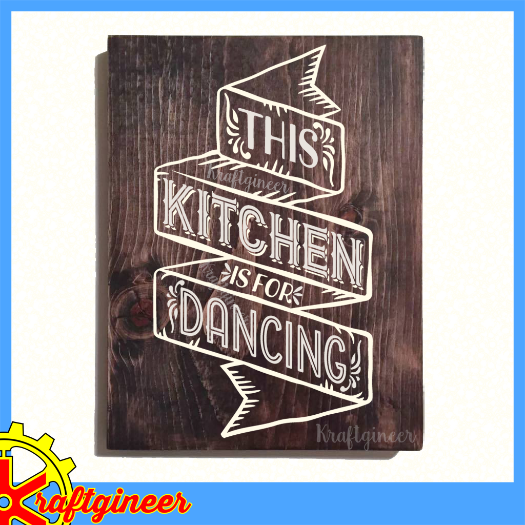 Kitchen saying in a banner. “This Kitchen is for Dancing” svg. This design is perfect for wood signs, garden flags, placemats and other house deco! This design can be used on pillows, shirts, glass blocks, tiles, glass cutting boards, mason jars, floating frames, scrapbooking or any other craft medium. For use on many vinyl projects and even paper projects!
