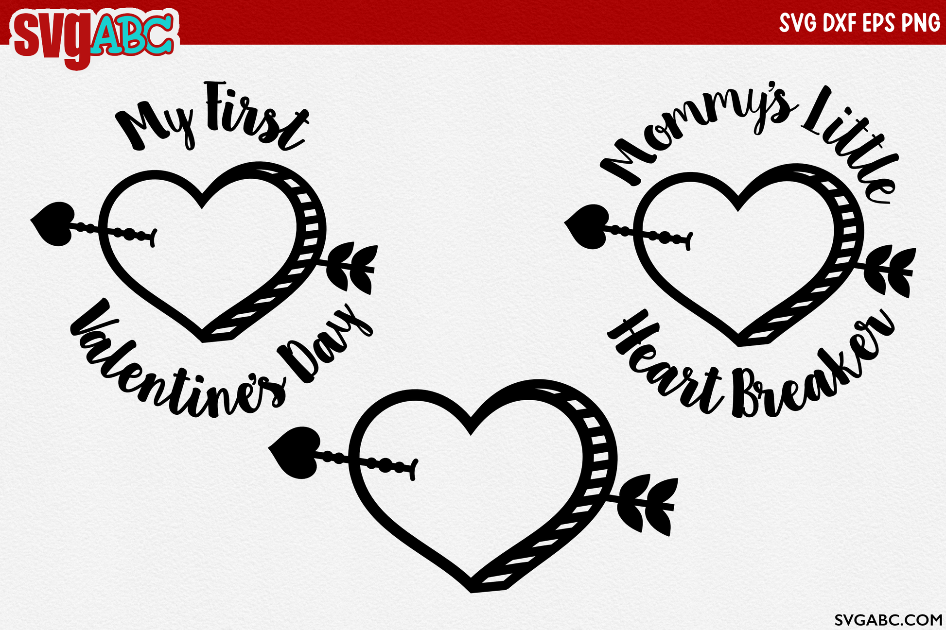 Valentine’s day and love design of a heart with an arrow through. Three versions of the design included, one with the heart in the middle and phrase “My first Valentine’s Day” in a circular shape, one with the heart in the middle and the phrase “Mommy’s little Heart Breaker” in a circular shape and the heart with the arrow by itself. This design can be used on pillows, shirts, glass blocks, tiles, glass cutting boards, mason jars, floating frames, scrapbooking or any other craft medium. For use on many vinyl projects and even paper projects!