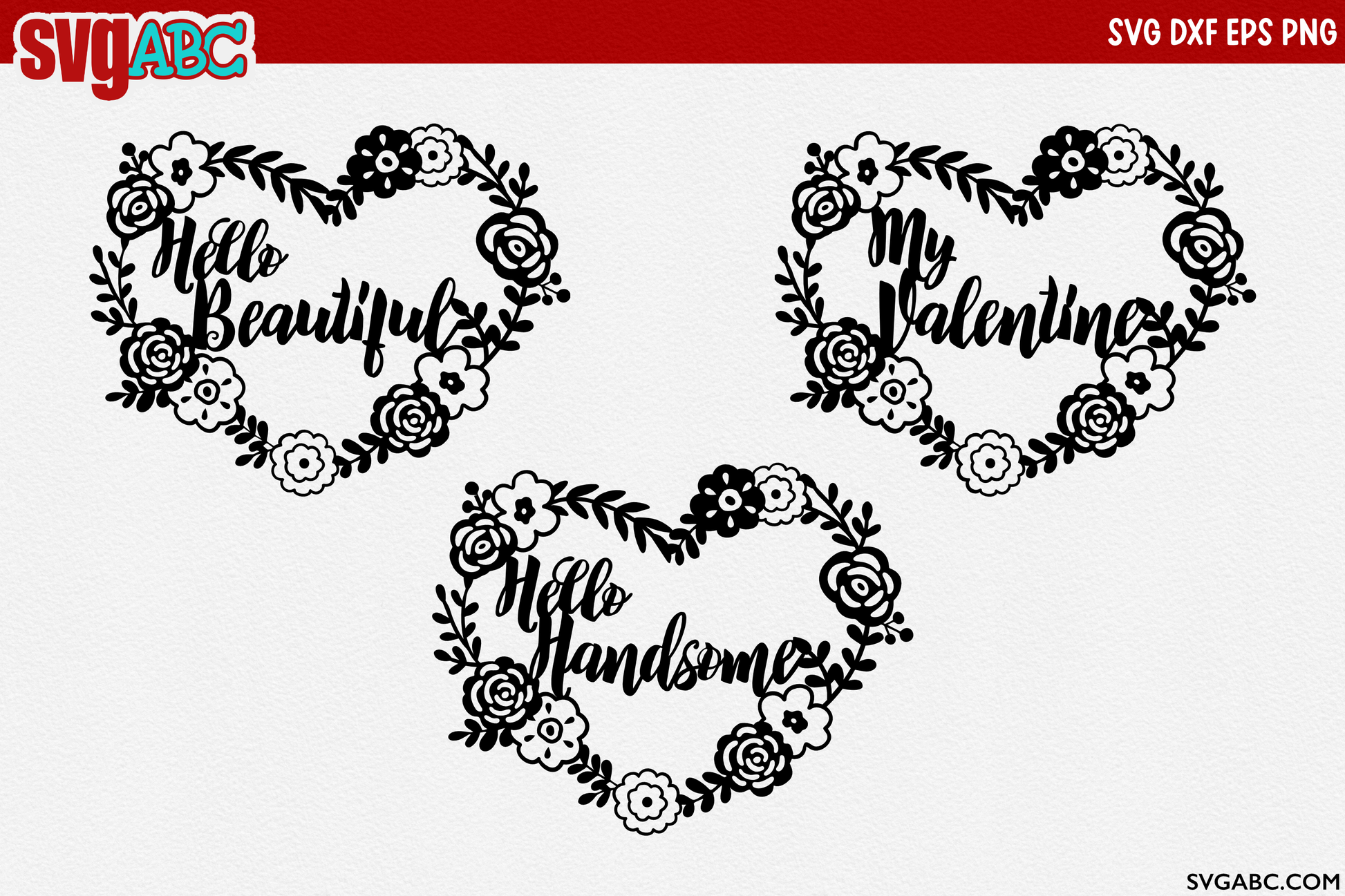 Valentine’s day, wedding and love design of a floral heart. The flowers and leaves form the shape of the heart. Three versions of the design included, a floral heart with the phrase “Hello Beautiful”, a floral heart with the phrase “Hello Handsome” and a floral heart with the phrase “My Valentine”. This design can be used on pillows, shirts, glass blocks, tiles, glass cutting boards, mason jars, floating frames, scrapbooking or any other craft medium. For use on many vinyl projects and even paper projects!