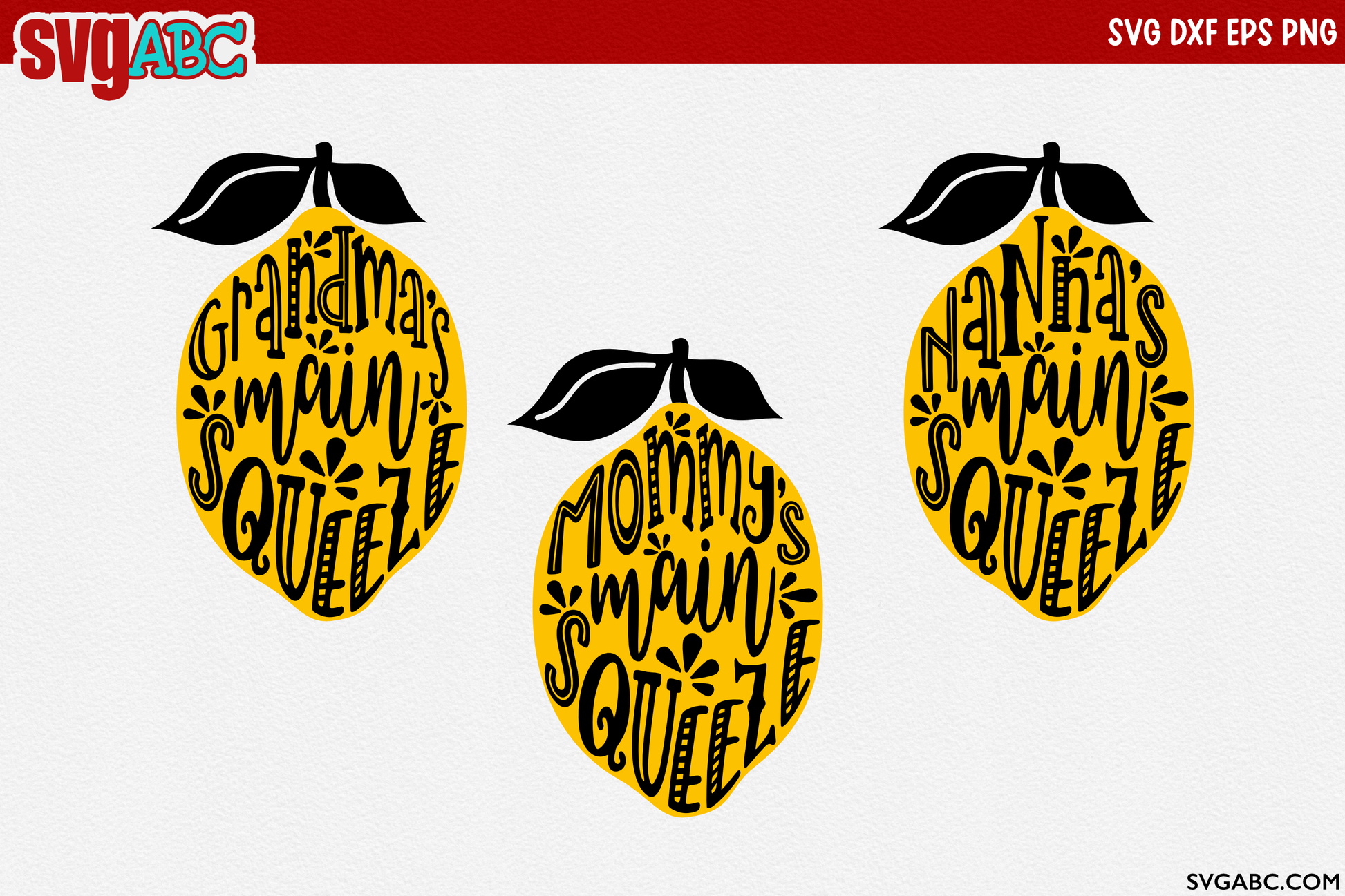 Set of 3 typography inspired Main Squeeze designs. One design for “Mommy’s,” “Nanna’s” and “Grandma’s.” The phrases are in the shape of a lemon.