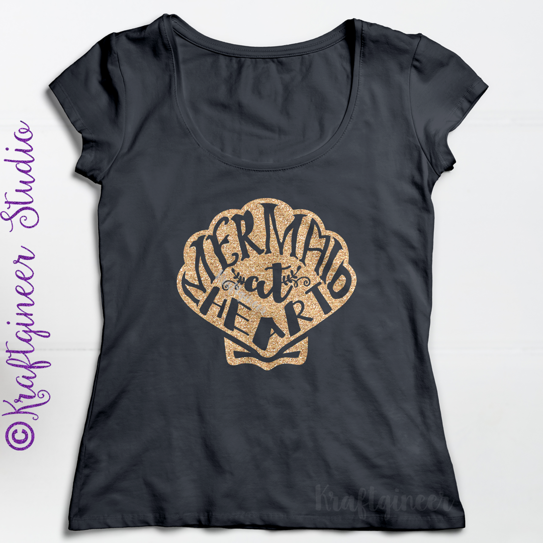 This mermaid design has the phrase “Mermaid at heart” in the shape of a shell. Two versions included, one version where the phrase is cut out of a shell outline. The second version has the same phrase “Mermaid at heart” and the words form the shape of a shell. Cut out the design in one color or multiple colors! This design can be used on baby one piece sets, T-shirts, canvas bags, garden flags, glass blocks, tiles, glass cutting boards, mason jars, floating frames, scrapbooking or any other craft medium. For use on many vinyl projects and even paper projects!