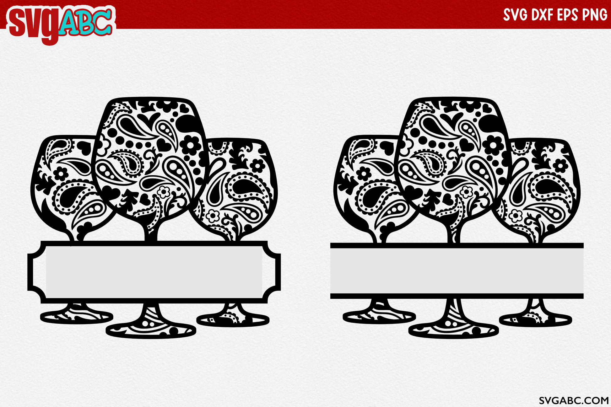 Here is an intricate paisley wine glasses design! The paisleys form the outline of a three wine glasses. Two versions included. One version is the three wine glasses split by two lines. The second version is the three wine glasses split by a frame with arched corners. It can be used on shirts, glass blocks, tiles, glass cutting boards, mason jars, floating frame, shadow box or any other craft medium. For use on many vinyl projects.