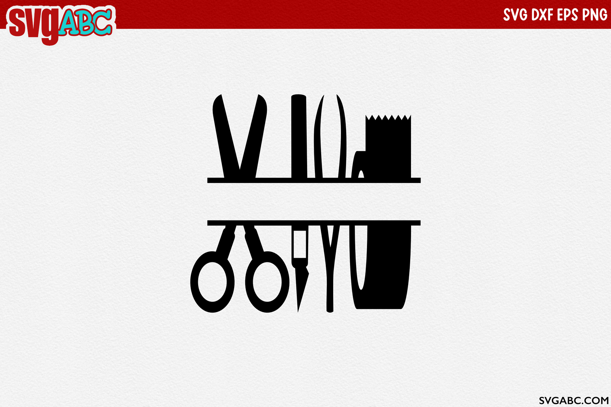 Split craft tools design. The design is composed of scissors, a craft knife, a vinyl weeding tool (tweezers) and tape. The design can be customized with a name, a nickname or any other crafty writing. This design can be used on T-shirts, canvas bags, garden flags, glass blocks, tiles, glass cutting boards, mason jars, floating frames, scrapbooking or any other craft medium. For use on many vinyl projects and even paper projects!