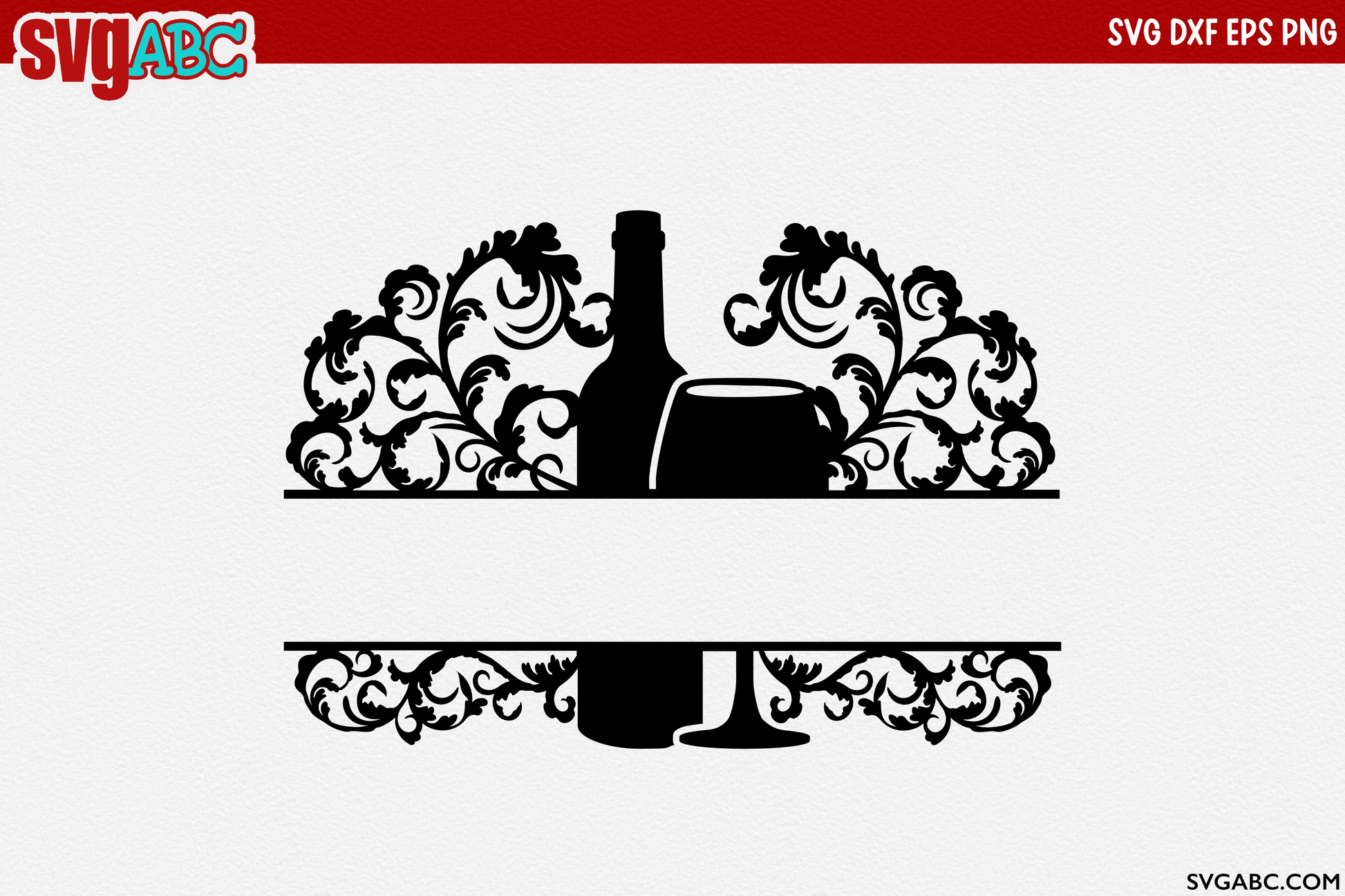 Swirly wine design. The design includes a split wine bottle and wine glass surrounded by scroll vines. The filigree vines are to the left and right of the bottle and glass. This design can be used on tote bags, pillows, shirts, glass blocks, tiles, glass cutting boards, mason jars, floating frames, scrapbooking or any other craft medium. For use on many vinyl projects and even paper projects!