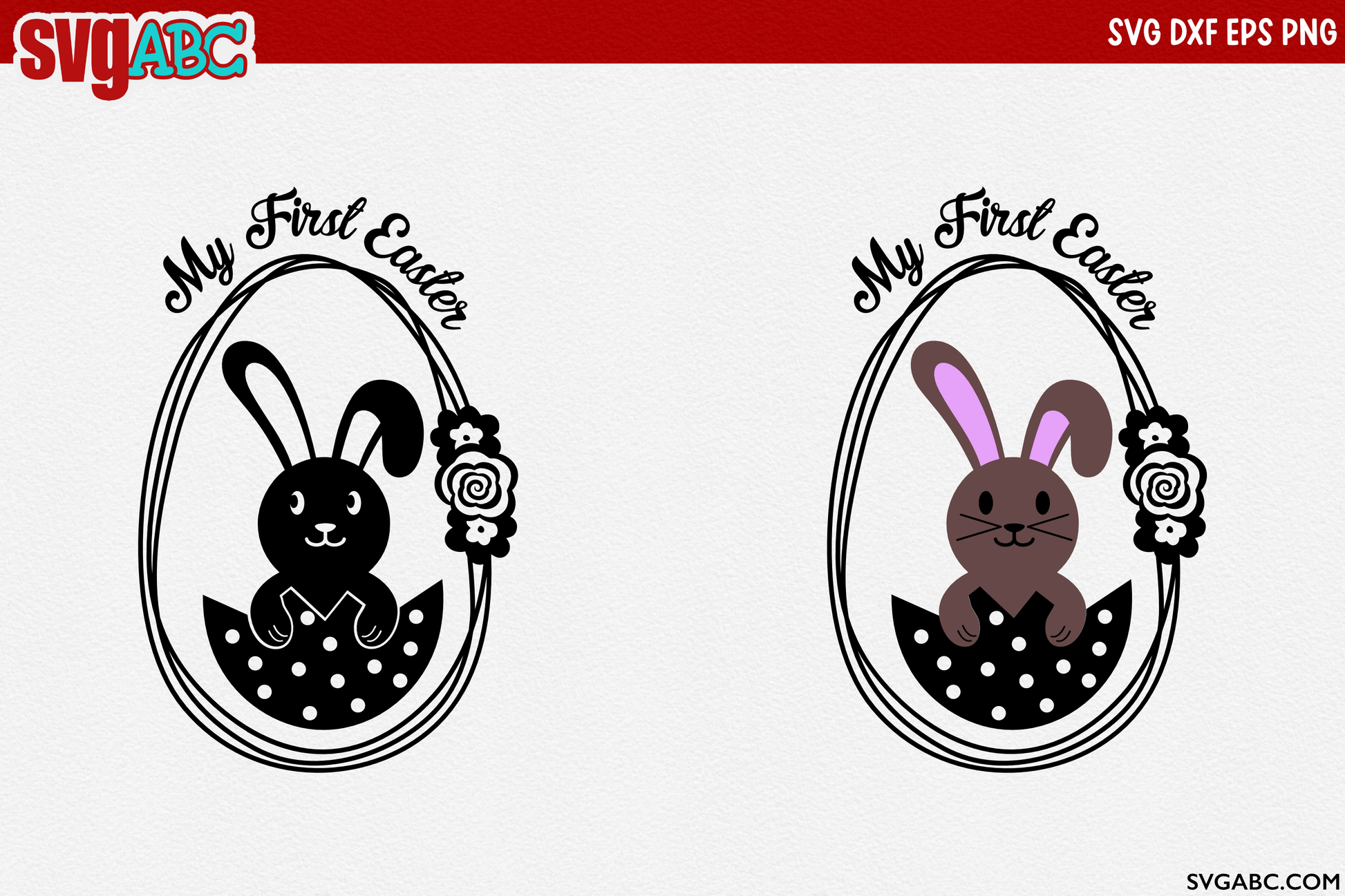 Very cute Easter design of a bunny inside of a broken shell. The bunny is surrounded by a vine or rope with 3 flowers and the phrase “My first Easter.” You can use or hide the phrase to use the design for any Easter! Two versions of the design included, the first design is a layered design perfect for HTV, or even wooden signs. The second version is a version with no layers perfect for single color vinyl cuts, papercut art, scrapbooking and more. This design can be used on wooden signs, pillow, glass blocks, tiles, glass cutting boards, mason jars, floating frames, scrapbooking or any other craft medium. For use on many vinyl projects and even paper projects!